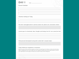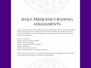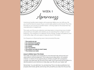 The workbook/Journal contains reference materials and resources and more to support your journey (Healthy Nutrition Plan Pptions, Higher Frequency Word Options, Tons of Reflection Space, Mandalas, Sacred Geometry, Manifestation Practices, and more!)